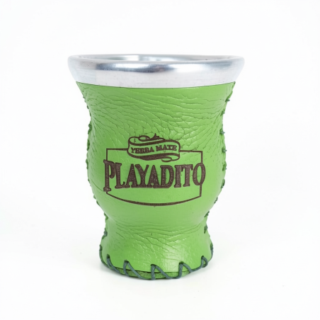 Wunderbarer Mate aus Glas, mit echtem Leder bedeckt. Das Leder trägt die Marke Playadito. Der metallische Ring oben ist aus Aluminium.