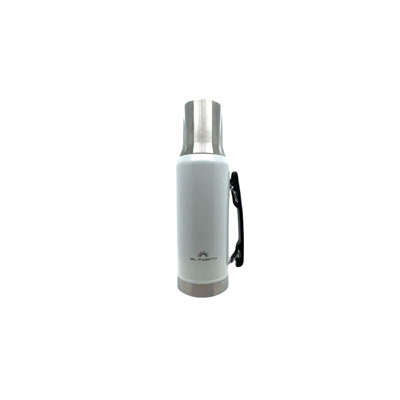 Thermos de grande capacité (1.2 litre) en inox, avec bec verseur et tasse en inox. Conserve la température pendant environ 12 heures.
