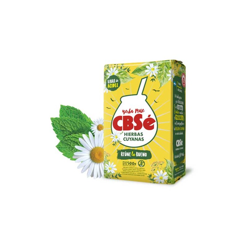 La yerba CBSé Hierbas Cuyanas est un mélange récent qui contient en plus de la yerba un mélange de huit herbes aromatiques et médicinales. Il s’agit de plantes rafraichissantes et digestives comme plusieurs sortes de menthe, du fenouil, ainsi que de la menthe et d’autres plantes typiques d’Amérique du Sud comme le boldo et l’incayuyo.