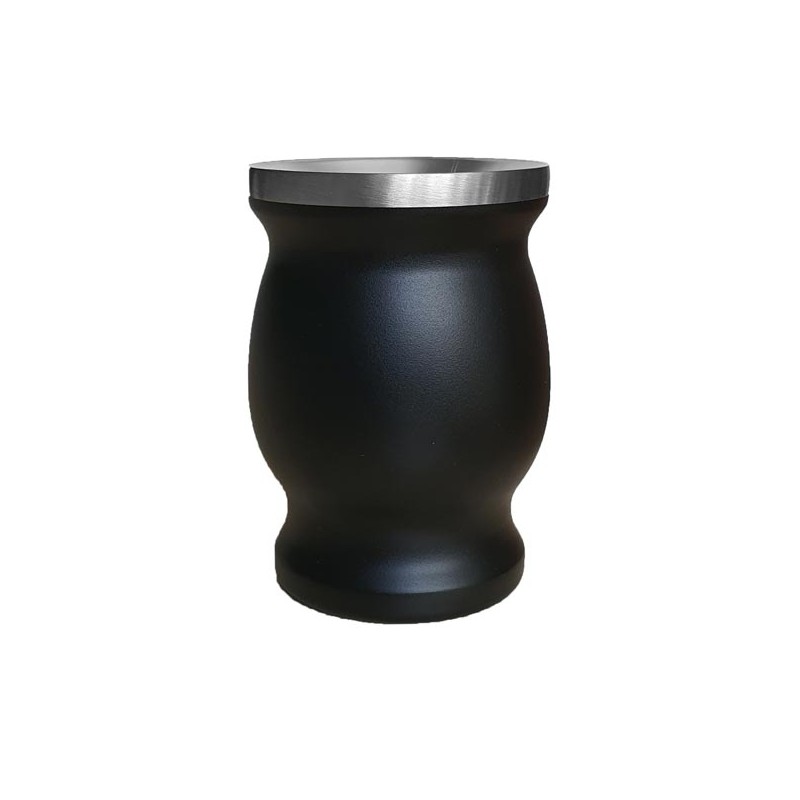 Mate in acciaio inox con decorazione nera liscia.